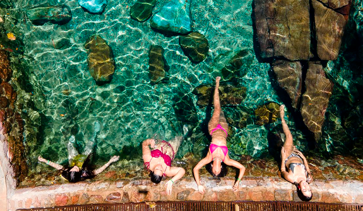 Caldas Novas e Rio Quente, apesar de serem municípios de pequeno porte, atraem uma quantidade significativa de turistas durante todo o ano. A principal atração desses locais são suas fontes de água termal, com temperaturas variando entre 36 e 70°C. A experiência de desfrutar de um mergulho em uma piscina quente e confortável por alguns minutos sem vontade de sair explica por que esses destinos são tão populares. Casais, idosos e famílias com crianças são especialmente encantados com esses lugares.